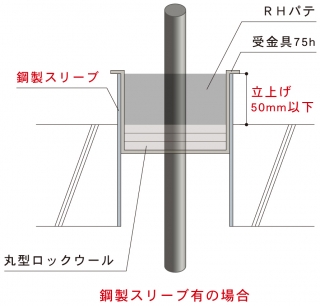 1)水漏れ防止等の鋼製スリーブが入ってる状態にも対応しています。