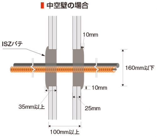・中空壁の場合も補助材を使用せず、両側からISZパテのみを施工する工法です。