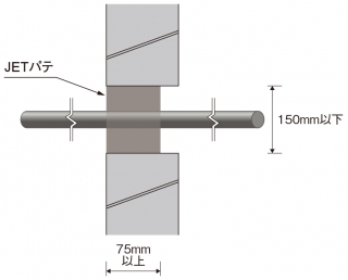 3)JETパテの耐火断熱性能の向上により充填奥行き75㎜のみ施工で国土交通